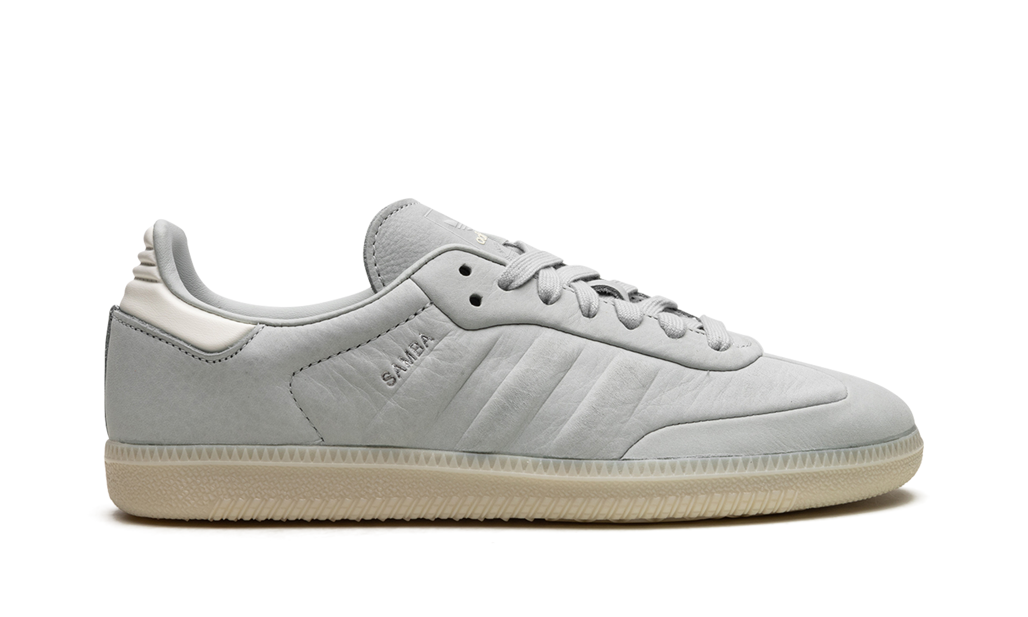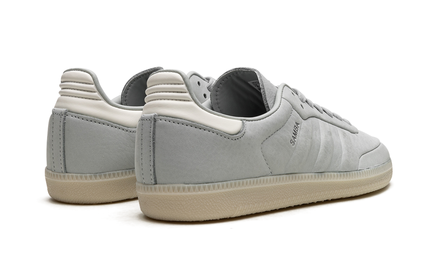The adidas Samba “Wonder Silver” is a minimalist colorway on the retro indoor soccer sneaker with a unique design. The colorway features a Wonder Silver-colored leather construction with tonal Three Stripes on the sides and tonal overlays on the toe and forefoot. “Samba” branding appears next to the raised Three Stripes logo on the lateral side of the shoe. Debossed “adidas” detailing appears on the tongue. A semi-translucent gum rubber sole completes the look of the versatile and casual colorway.