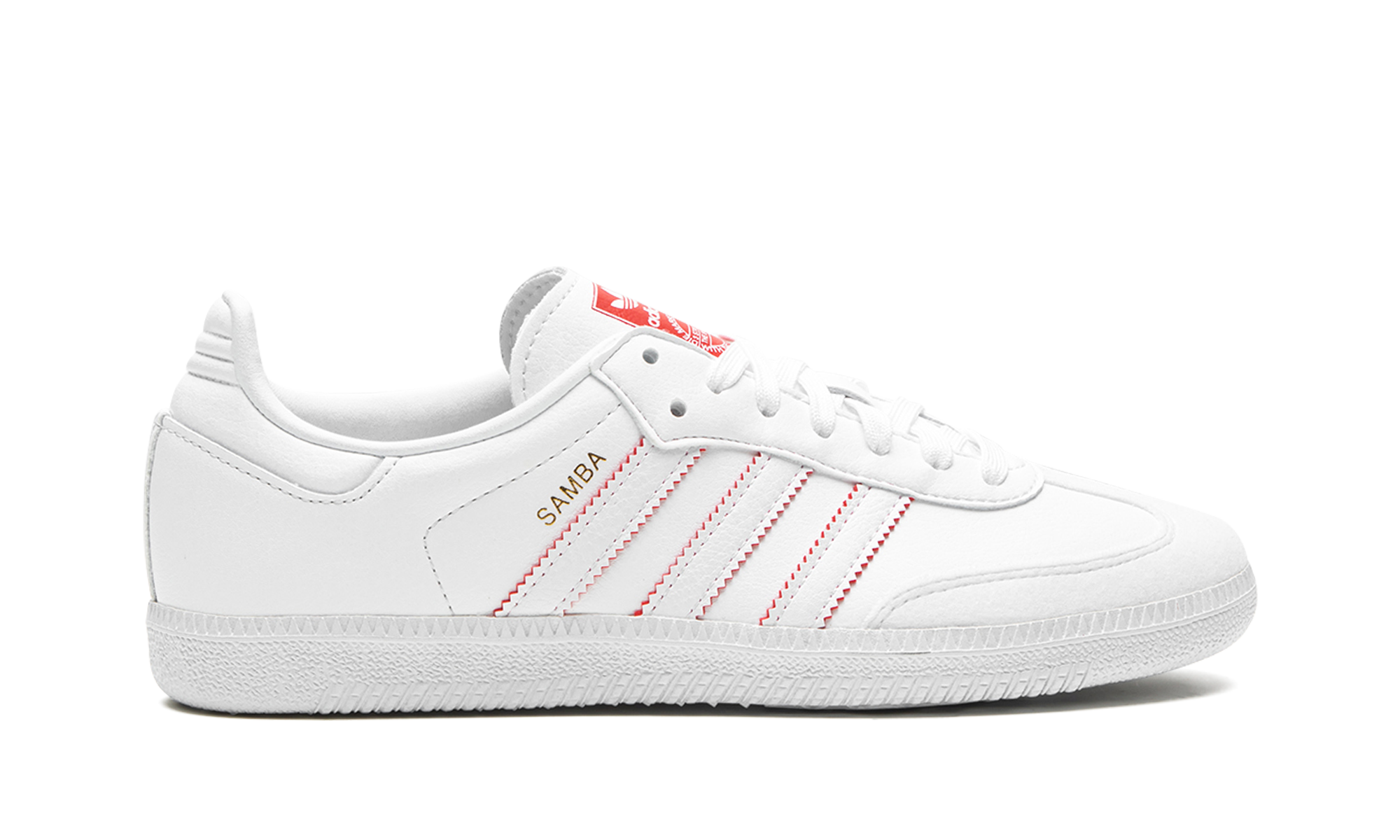 The adidas Samba Vegan "Minnie Mouse” is a creative colorway of the eco-friendly version of the popular lifestyle shoe that is inspired by the iconic Disney character. The adidas Samba Vegan “Minnie Mouse” joins the Samba’s “Mickey Mouse” colorway in celebrating Disney’s 100th anniversary in 2023. The shoe features a white vegan leather design with “Samba” branding next to the classic Three Stripes detailing with red accents on the sides. Additional red accenting can be found on the tongue, which is inspired by Minnie’s red outfit. Minnie’s hands are found on the heel of the left and right shoe and form a heart design. Release date: April 27, 2023